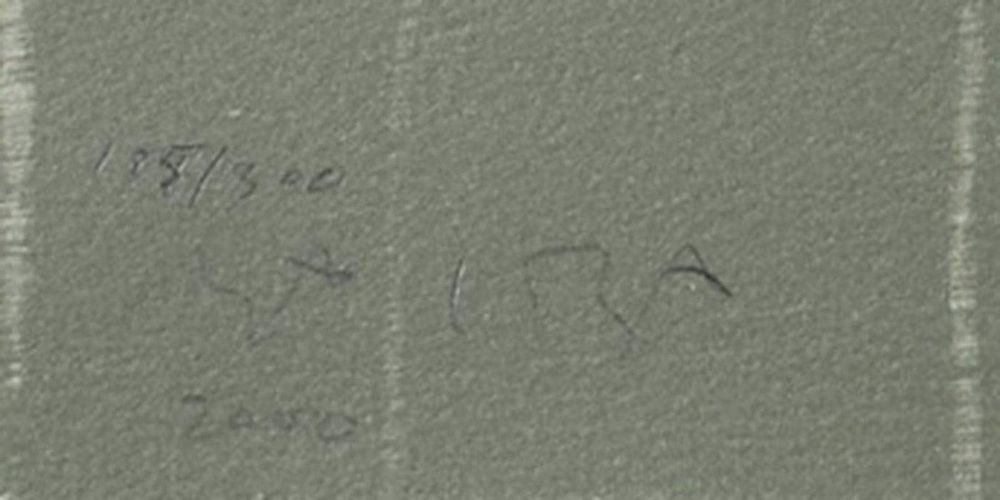 2 colour lithographic print on silkscreened pearlescent ground, printed on Somerset Velvet 300 gsm.