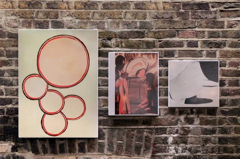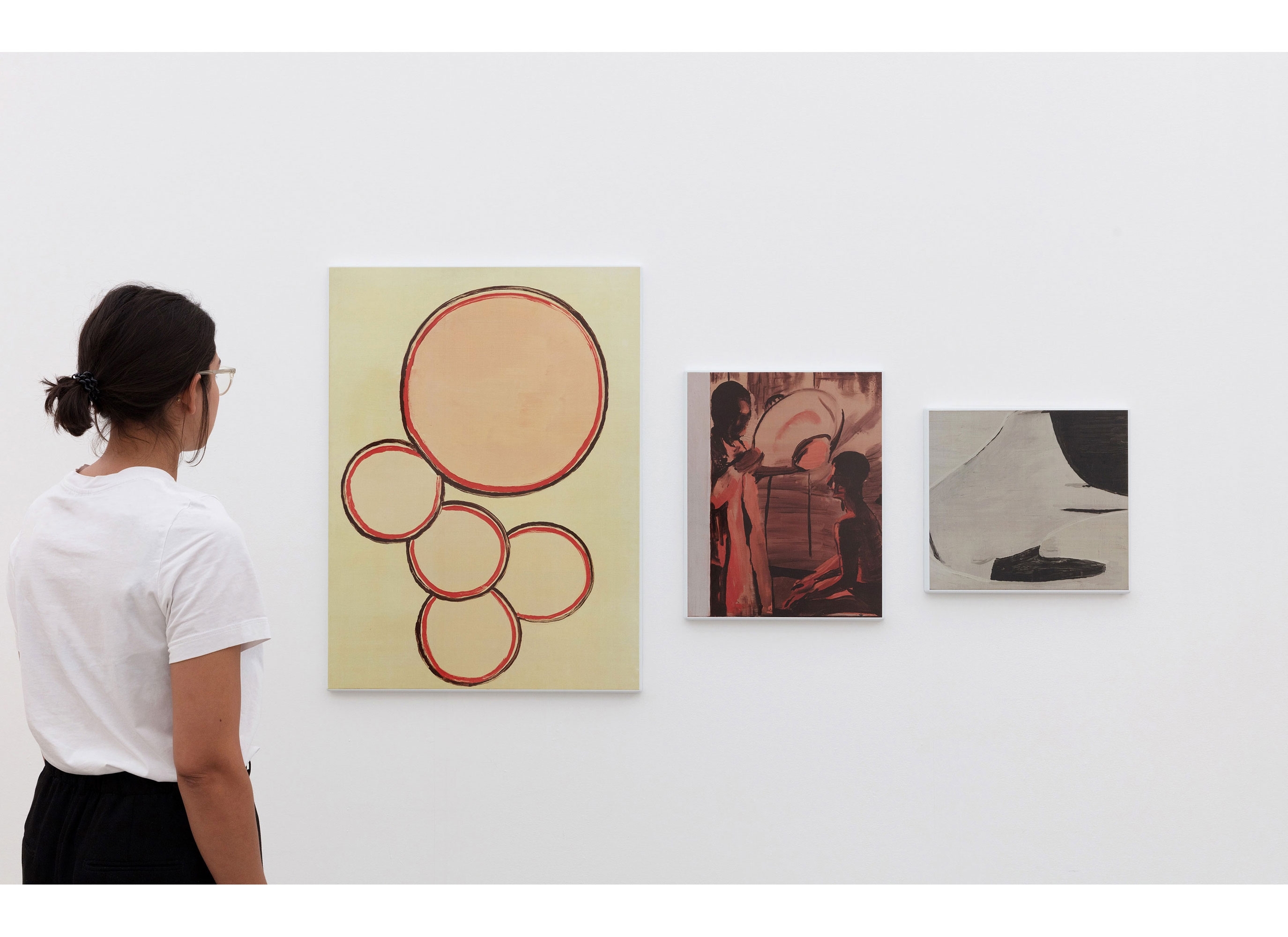 'Healing Light' (2018) is a screen print on vitreous enamel in three parts which moves from the seemingly abstract to the figurative, and is rendered in a range of muted colours and loose marks that are key elements of Tuyman's highly precise, inimical style.