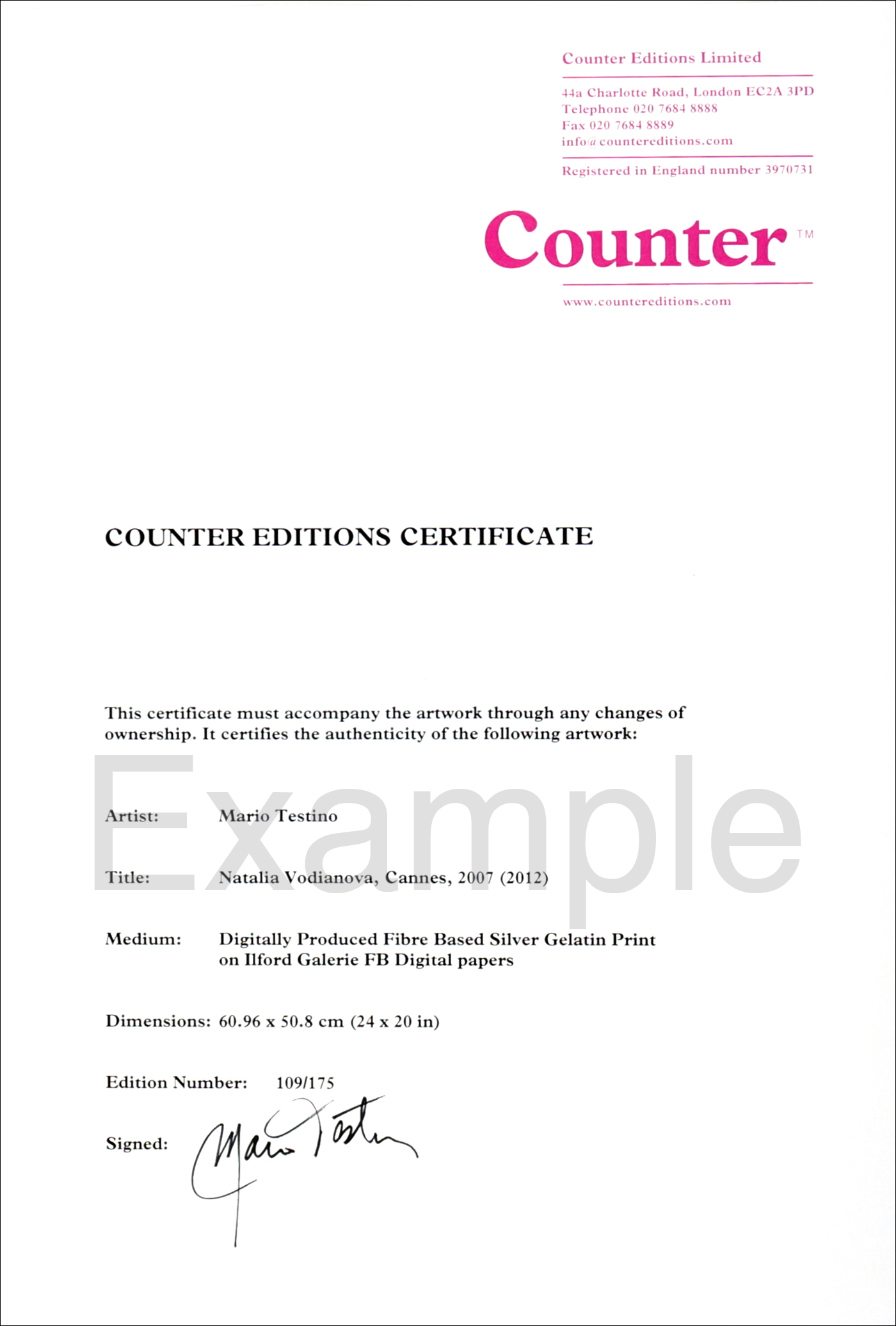 'Natalia Vodianova, Cannes, 2007' was released on the occasion of his major retrospective at the MFA in Boston, 2012.