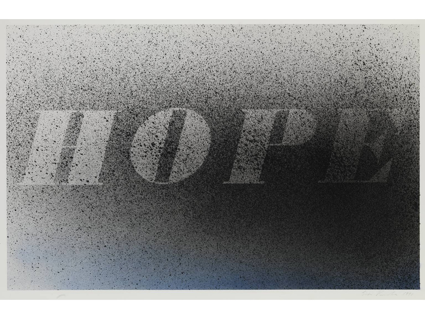 Ed Ruscha began his career creating commercial graphics for a Los Angeles advertising agency in the 1960s. His subsequent work often references advertising, both in themes and technique. How words, sounds and images relate to each other is an ongoing fascination.