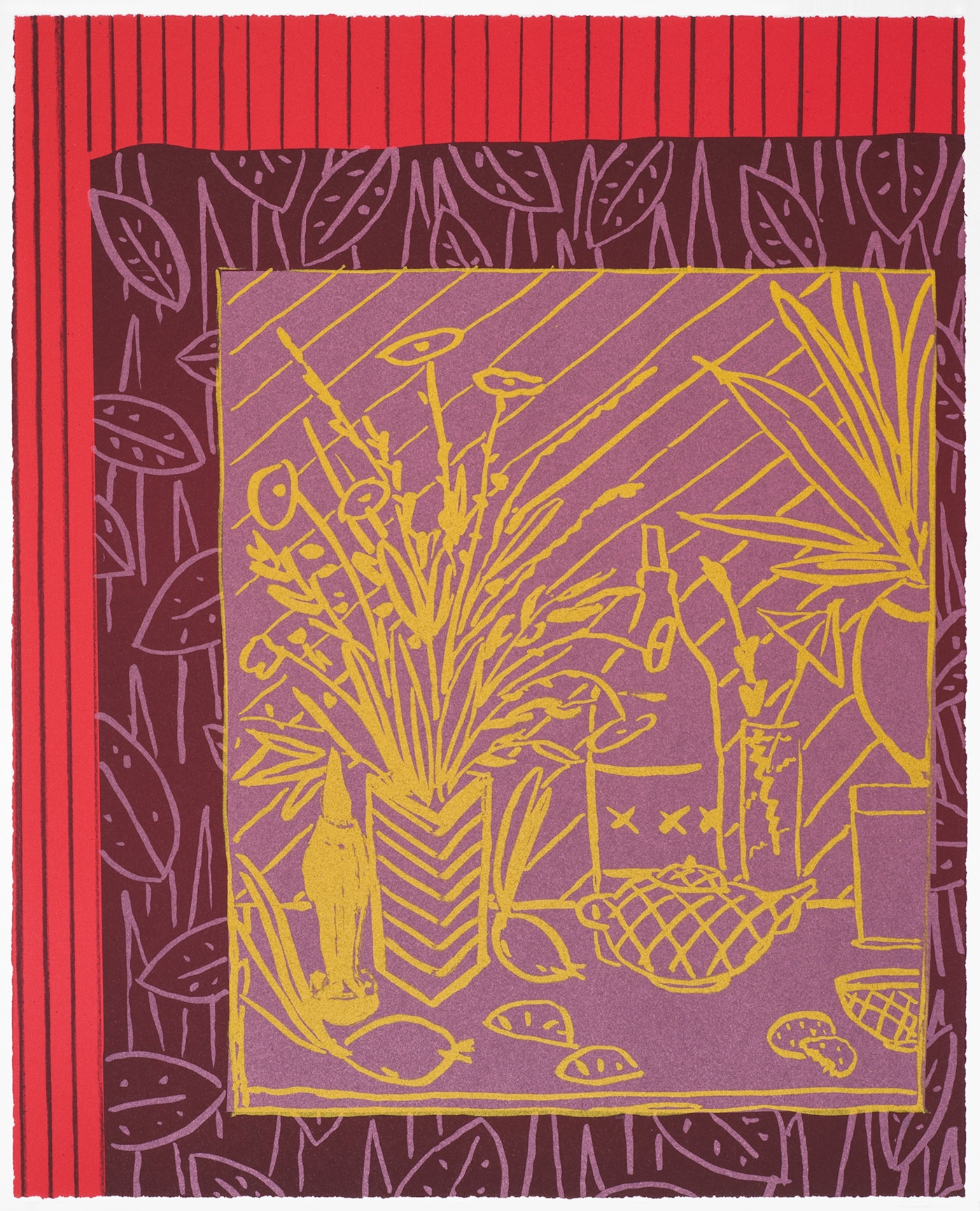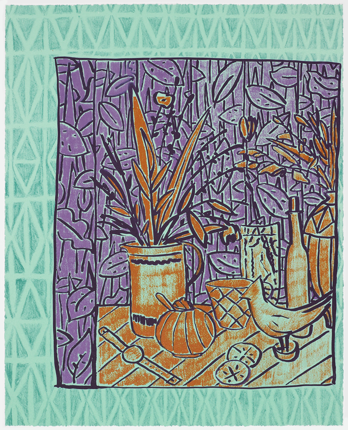 Our first collaboration with John McAllister is a beautiful series of four lithographic prints. The prints are available both as a set - presented in a specially designed and handmade debossed clothbound portfolio - as well as individually. Each of the four prints capture McAllister's customary use of lush colours, depicting still life scenes layered up against a collaged background of geometric patterns and luminescent foliage. The prints are released to coincide with a solo show of McAllister's new work at Carl Freedman Gallery, which opens on Thursday 9th October.
