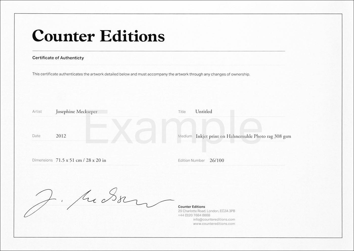 Josephine Meckseper was born in 1964 in Lilienthal, Germany. She lives and works in New York.
